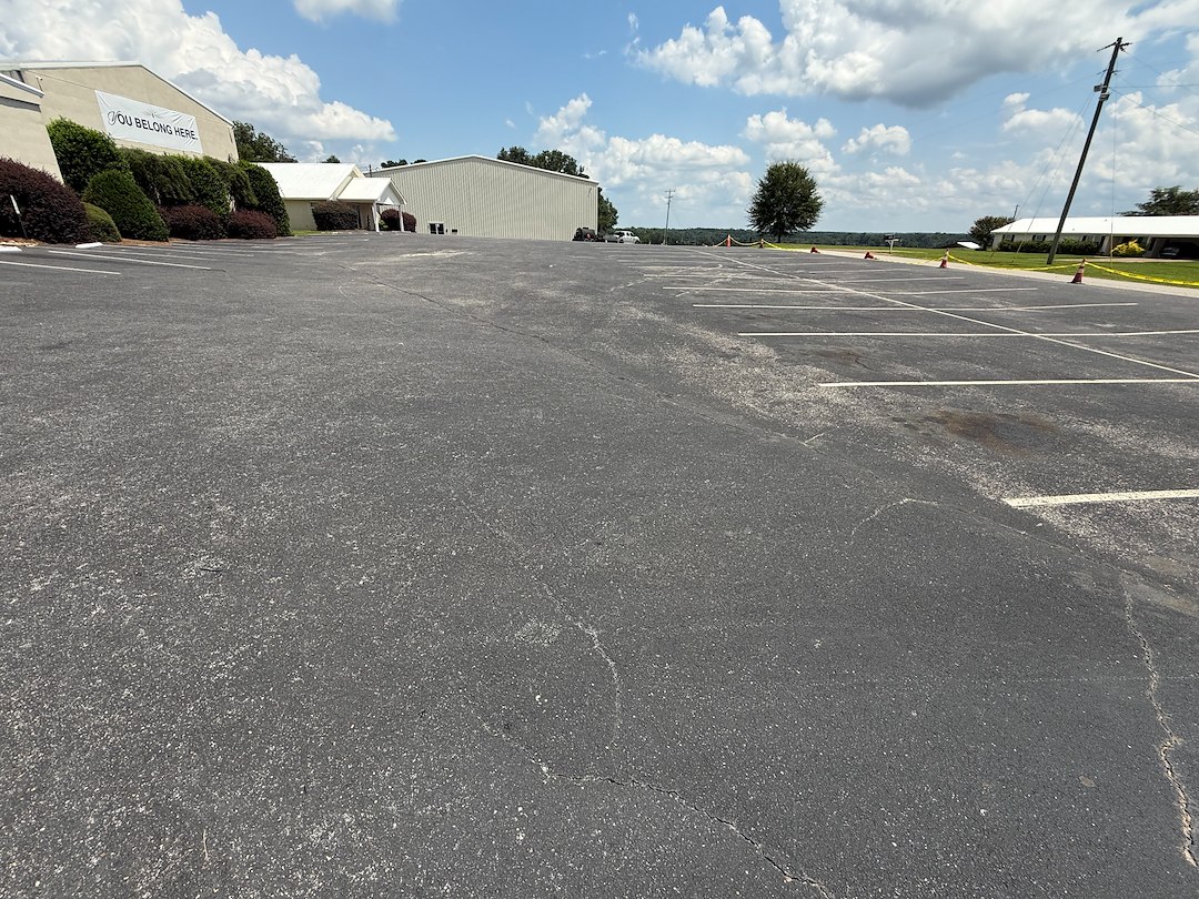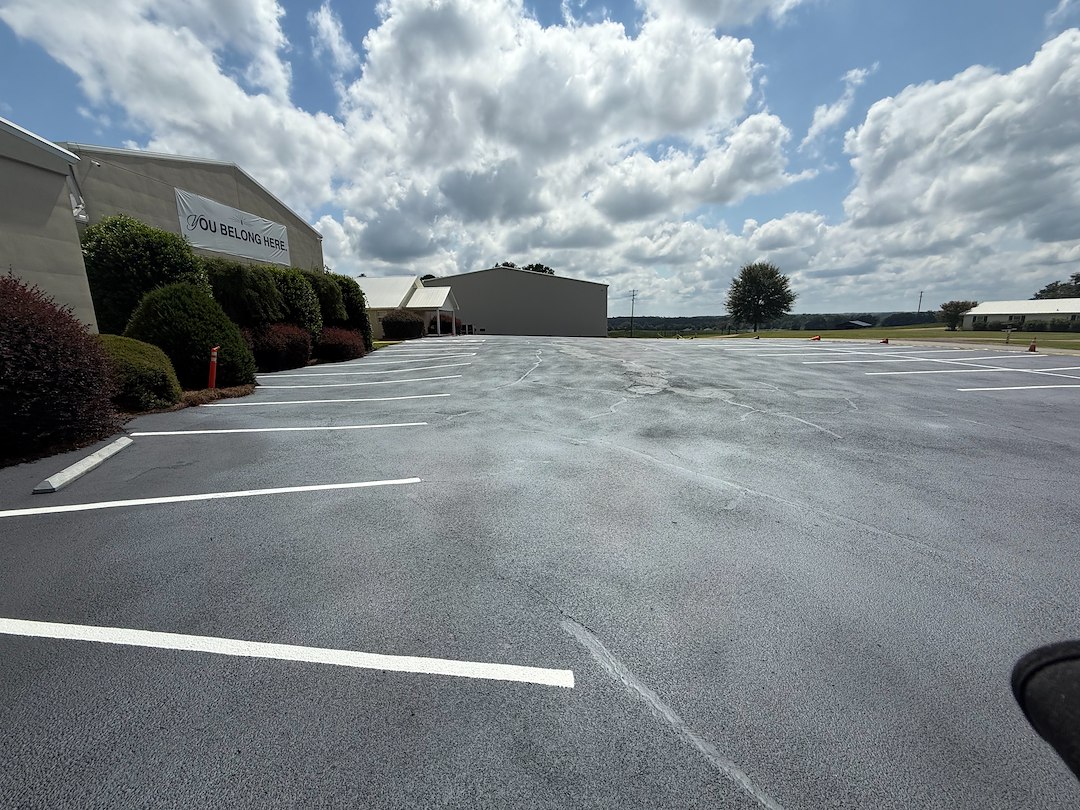 That’s why a local church in Walnut Grove, MS, contacted us to restore and protect their parking lot. Our team applied a fresh layer of high-quality asphalt sealcoating to protect the pavement from further damage and extend its lifespan. After sealing, we added crisp, professional line striping to clearly mark parking spaces, traffic flow, and designated areas.