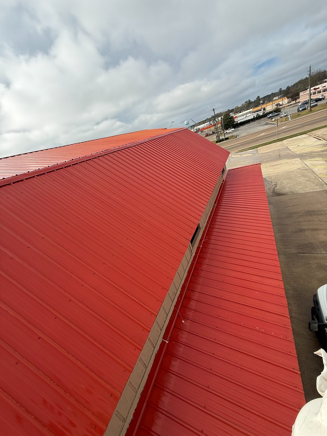 Central MS Soft Wash & Line Striping recently completed a commercial roof cleaning, and commercial building washing, and Commercial pressure washing project for a restaurant in Forest, MS. The property had visible staining, organic growth, and dirt buildup on the roof and exterior surfaces that were affecting the building’s appearance, curb appeal, and overall first impression for customers.