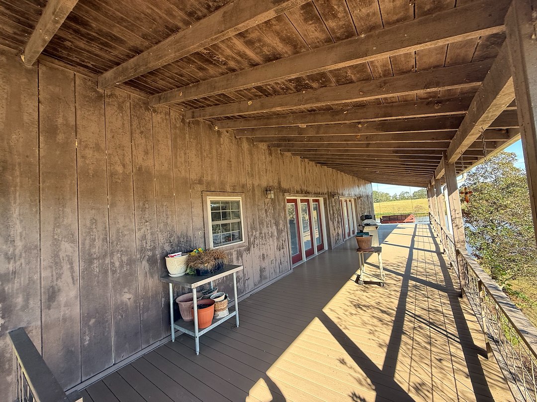 For this project, we performed a full residential soft wash that included the siding, trim, and exterior surfaces of the home, along with detailed cleaning of both the front and back porches. We also surface cleaned the driveway and all surrounding concrete walkways to restore brightness and remove deep-set staining.